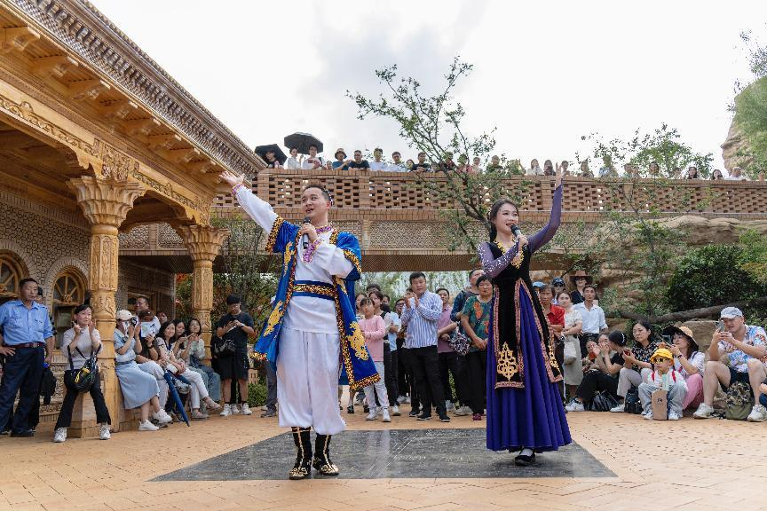省歌舞剧院演员带来的《达坂城的姑娘》,吸引了大量游客驻足乌鲁木齐馆。