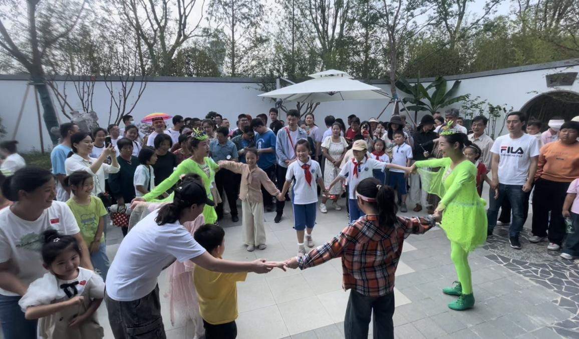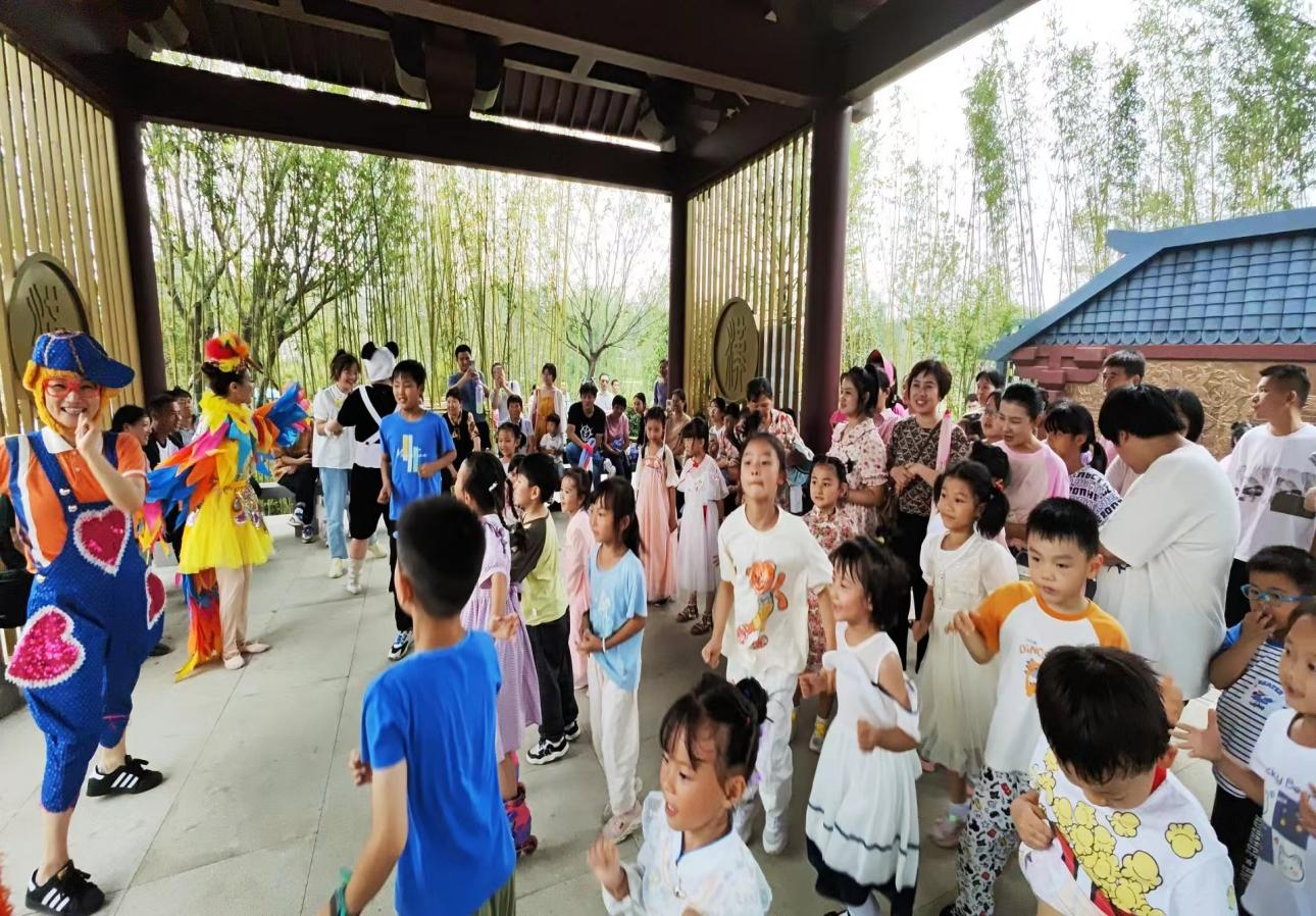 苏州馆内,省话剧院演员演出前同小朋友们互动做游戏。