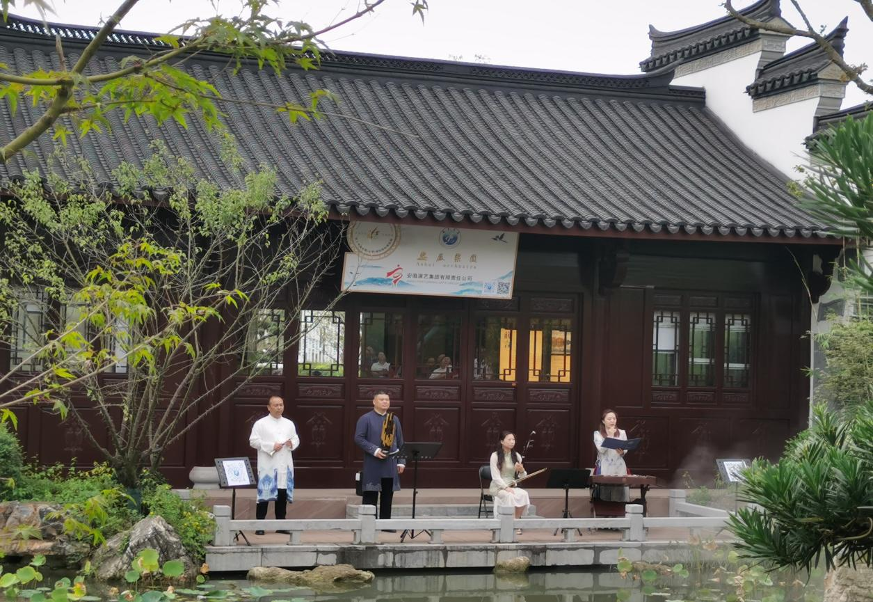 安徽乐团演奏员在宁波馆为游客演奏民族乐曲《茉莉花》。